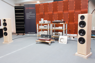 欧州への再上陸2年目を迎え、今年から単独ブースを「Atrium」ゾーンに出展したラックスマン。ブースではセパレートアンプ「C-900u/M-900u」や真空管アンプ「MQ-300」、SACDプレーヤー「D-08u」などを中心としたシステムで再生デモを実施。レコードプレーヤー「PD-171A」やフォノイコライザー「EQ-500」などアナログ関連製品も注目を集めていた。