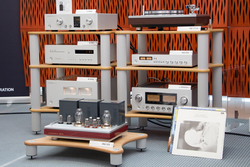 発表されたばかりのヘッドホンアンプ「P-750u」も早速登場。L-590AXIIをはじめとするプリメインアンプ、木箱ケースのCDプレーヤー/プリメインアンプ「D-380/LX-380」なども出展されていた。