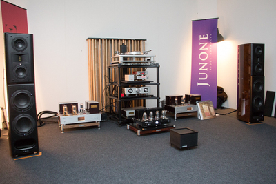 TRIODEは、ホールに自社ブースおよび試聴ルームを用意。TRIODEおよびJUNONEブランドの真空管アンプなど各製品、同社が取り扱うCROSSZONEのヘッドホンなどを出展した。