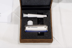 会場2階の展示会場では、オーディオ各社が多種多様な製品を一斉展示。ヒノエンタープライズはZYXのカートリッジに加え、電動三次元振動によるクリーニング&ポリッシュ方式を採用したスタイラス・ポリッシャー「LAMBDA UP-1」といったクリーニングアイテムも用意。またBlack Ravioliの輸入業務を今秋より開始するとして参考出展を行っていた。