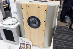 フィデリティゲートはスピーカーケーブル「SP2103-S16」やRCAケーブル「RC9031」などケーブル製品を展示しており、これらは会場にほど近いオーディオユニオンお茶の水アクセサリー館で試聴可能とのこと。また受注生産品となる後面開放・無垢材バッフル交換型のスピーカーを参考出展。ユニットの交換も可能で、展示品にはDIATONEのユニットが取り付けられていた。