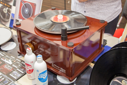 会場の2階ホールには、今年もアナログ関連ブランドや専門誌を手がける出版社が多数のブースを出展。IKEDA Sound Labsは、同社のトーンアームや、新製品となる制振合金スターサイレント材を組み込んだインシュレーター「SS45R」を展示していた。アイコールは、国産初というバキューム式レコードクリーナーマシン「クリーンメイトIQ1100A」のデモを行っていた。