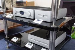 完実電気は、英REGAのアナログレコードプレーヤー各種を一斉展示。オプションとなる純正ターンテーブルシートのカラーバリエーションも披露していた。ユキムは、ELACの90周年記念レコードプレーヤー「Miracord 90」をデモ。また、昨日取り扱い開始を発表したAudio Alchemy(オーディオ・アルケミー)の製品もさっそく披露していた。