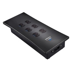 筐体には削り出し加工によるアルミ合金、トッププレートには制振性の高いカーボンファイバーを採用。コンセントは新開発のもので、導電性に優れた純銅電極(刃受け部)と接触用加圧バネを独立させた2ウェイコンダクターとした。これは刃受け部での接触面積を拡大し高い給電能力を実現しつつ、ACプラグのブレードを傷つけないというメリットがあり、オーディオ専用コンセント分野では世界初採用とのこと。