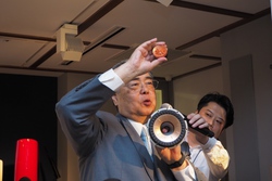 発表会にはMUSIC GALLERY設計者の平野哲行氏、KEF JAPAN 秋山和道社長らが、「KEF MUSIC GALLLEY」を開設する狙いについて語った。また音楽プロデューサー/ベーシストの中村照夫氏、フジテレビプロデューサーの金子公一氏らが招かれ、秋山社長とKEF製品に関してトークセッションを行った。
