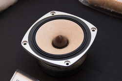和楽器をモチーフとして作り上げられた本機だが、開発の出発点となったのは、セルロースナノファイバーを用いた振動板を採用した100mm径ノンプレス・ONFコーンウーファーだったという。