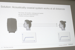 発表会では、THE ONESの知覚面からの解説もチーフ・テクノロジストのThomas Lund氏より行われた。Lund氏は「GENELECはいつも定位を大事にしている」と話し、人間の聴覚について解説。「人間の外耳は人によって大きくことなりますが、この外耳を上手に使うことで人は音を聴いています。身体的な特徴に合わせた音の聴き方をこの外耳を使って自己共有していくのですが、これがスピーカーリスニングの大きな利点でもあります」とLund氏は語り、「オーディオのプロフェッショナルとして、聴感の疲労がどのように起きるのかも把握して置く必要がある」と続けた。