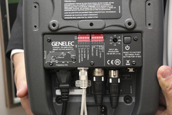 この聴感の疲労の原因として「音圧」と「イメージング」を挙げ、GENELECのスピーカーがこれらを解決してより効果的なモニタリングを行うためのアプローチをしていうことをアピール。9種類のディップスイッチによって置き場所に合わせた適切なセッティングをサポートできるほか、同軸ユニットやGLMを搭載したことでより自然かつ理想的な環境とすることができたことを解説した。