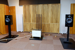 内部配線材にはTHE CHORD COMPANY社のものを採用。これは国内外のメーカーを聴き比べた結果、音が良いから選ばれたのだという。ウーファーユニットを固定するチタンビスも、国内外から集めて検証した結果、大阪から取り寄せているという。そのほか、スピーカースタンドはティグロン製のものがDIATONE用にオリジナルで用意される。