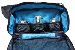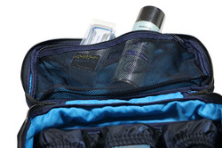 ポーチの内部には、ナガオカ製カートリッジケースが収納できるポケットを3つと、イヤホンやアナログ/デジタル周辺機器を収納できるファスナー式メッシュポケットを備える。