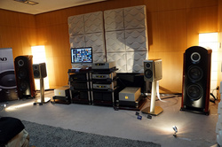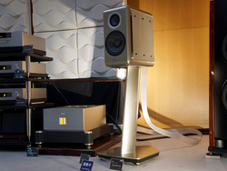 もちろん専用スタンドも「TAD-ST3」のシルバーカラーモデルを使用。記者がブースに訪れたタイミングでは、USB-DAC機能を搭載するSACDプレーヤー「TAD-D1000MK2」とパワーアンプ「TAD-M2500MK2」とを組み合わせ、ハイレゾ音源やCDリッピング音源での音出しデモを行っていた。