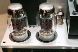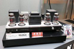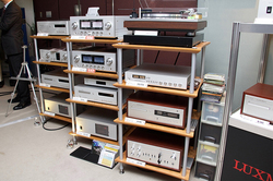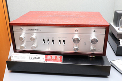 また本日9月29日に発表された、『ロ』の字型の木箱ケースを採用した真空管アンプシリーズの新モデル、プリアンプ「CL-38uC」およびパワーアンプ「MQ-88uC」も展示。従来は横幅400mmであったが本モデルより440mmに拡張し、ラックスマンの現行ラインナップと統一。真空管にはスロバキアJJ製を採用している。従来も一部に採用していたが、今回から全てをJJ製とし、動作安定性の向上を図った。