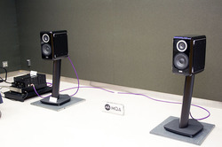 キソアコースティックでは、スピーカー「HB-X1」と、オーディオアクセサリーブランド“Shizuka”のオーディオ用カーペット「SAC-1016」、オーディオボード「NCB SERIES」を使用した試聴デモを行っている。