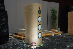 同ブースは初日の29日、Lumenwhiteの3ウェイ・5スピーカー構成の新スピーカー「Kyara」をメインに鳴らしていた。同ブランド復活後におけるwhite light anniversaryに続くスピーカーで、各ユニットにはCellテクノロジーによるセラミック製ドライバーを搭載。伝統の構成がさらにブラッシュアップされ、精細な表現力と強大なダイナミクスを高度に両立したとする。試聴イベントでは「Kyaraはwhite light anniversaryより一回り小さいサイズで、Lumenwhiteのサウンドをより導入しやすくなっている」と説明されていた。