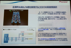 プレゼンテーションでは、パイオニアが長年のディスクプレーヤー開発を通じて、世界中の様々なコンディションのディスクから高精度に信号を読み取るノウハウを蓄積してきたことの蓄積は大きな資産で、それが本機にも最大限投入されたとアピールされた。