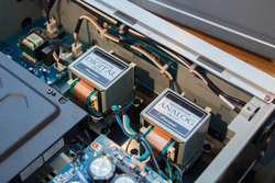 デジタル回路、アナログ回路それぞれに専用のEI型トランス電源を搭載。各EIトランスの大きさが、下の画像をご覧いただけるとわかるだろう。加えて、両回路に安定した電源を供給する電源基板もデジタル回路/アナログ回路それぞれ専用にディスクリートで構成。さらに電源経路の最短化・最適化も徹底されている。