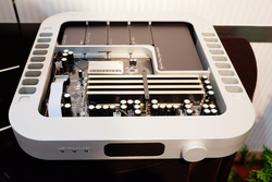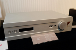 会場にはAyreのデジタルハブ「QX-8」、プリメインアンプ「EX-8」が参考出展された。QX-8は「ES9038Q2M」DACチップを搭載し、USB-B、RCA同軸、光TOS、Ethernetなどのデジタル入力に対応する。EX-8は可変ゲイン・トランスインピーダンス回路による超高S/N、低歪率ボリューム・コンストラクションなどを特徴としており、両機ともに開発段階のものを本イベントのために取り寄せたという。外観には、有名デザイナーが起用されたという。価格や発売時期は未定。