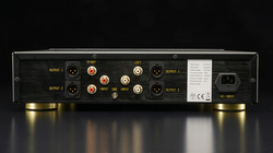 基板抵抗の足はすべて手作業で直接撚り合わせ、プリント基板の上にも裏打ち配線を加えて製造している。定格出力電圧は500mV(1kHz)で、出力インピーダンスは120Ω。入力端子はRCAで、出力端子にはRCA 2系統のほか、XLRのフルバランス出力も2系統備える。質量は12kg。