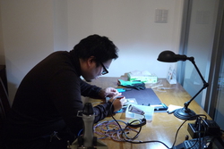 早速ショップを訪ねると、入り口には職人気質なスタッフ鈴木氏がはんだゴテを握り、イヤフォンのリケーブル、カスタムケーブルなどを製作していた。
