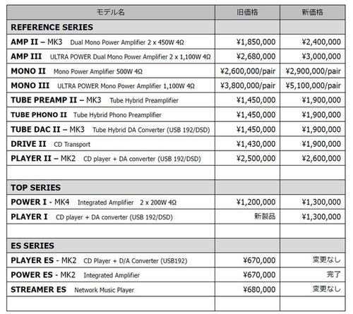 今回の価格改定は、国内価格をドイツ本国価格に合わせるため行われるもの。ACCUSTIC ARTSは昨年8月1日、部品価格の50%におよぶ高騰により、ドイツ本国にて価格改定を実施していた。