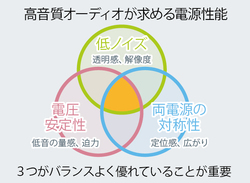 電源ICは、電圧変動やノイズが少ないクリーンな電源を供給するという重要な役割を担っている。それを実現するには電圧安定性、ノイズレベル、両電源の対称性という3つの特性が優れている必要があるが、既存の電源ICにはそれを満たすモデルはなく、オーディオ製品の高音質化における課題になっていたと同社は説明する。