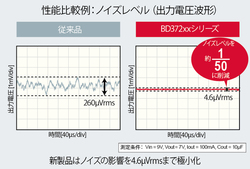 ローム(株)は、ハイレゾ再生など想定して音質に注力したオーディオ用電源IC「BD372xxシリーズ」を開発した。