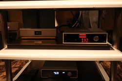 試聴システムには、アナログプレーヤーとカートリッジにTien Audio「TT3+Viroa 10inch」とTOPWING「青龍」を使用。EQカーブの切り替えについては、M2TECHのADコンバーター「JOPLIN MKU」のイコライザーカーブ調整機能を用いられた。この機器で、アナログプレーヤーからのアナログ信号をカーブ調整した上でデジタル信号に変換。M2TECHのDAC/プリアンプ「YOUNG MKV」で再度アナログ信号に変換され、アンプとスピーカーへ出力される。