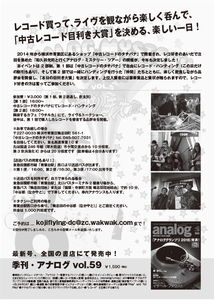思わぬ掘り出しモノがあると巷でも評判の「タチバナ」で、探していたあの盤が見つかるかも?結果は『季刊アナログ』に掲載されますので、日頃なかなか第三者からは評価されないあなたの「目利き度」を、誌面を通じて全国にアピールできる大チャンスです!