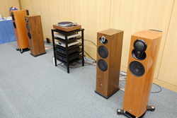またフォステクスでは、4月上旬に発表予定という音楽再生用サブウーファー「CW250D」を再生。新設計のアンプを搭載しており、1次側の電源、2次側のコンデンサーを見直し、動特性の改善を図ったという。そのサウンドについては「もたつきがなく、S/Nが良くなりました」とアピール。ステレオ使用がオススメとのこと。価格は予価で110,000円。同ブースは完実電気と共同の部屋となっており、同社が取り扱うREGAやPS Audioといった製品との組み合わせでサウンドが確認できる。