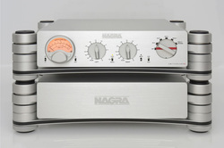 10人の熟達したオーディオデザイナーを有するNagra社 R&D部門によって開発、3年の歳月をかけて完成させたというHDシリーズの真空管プリアンプ。予算や時間の制約を設けずに、理想とする回路、機械的性能、電源部、温度管理の安定性や共振対策などを追求したという。プリアンプ部と電源部の2筐体構成を採用している。