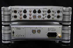 入力はXLR×2系統(入力トランス付きはオプション)、RCA×3系統を用意。出力はXLR×1系統、RCA×2系統を用意する。外形寸法はプリ部、電源部ともに440W×120H×400Dmm。質量はプリ部および電源部の合計で約30kgとなる。