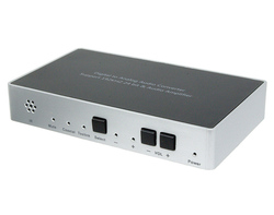 DACチップにはCS4344を搭載し、192kHz/24bitまでのPCMに対応。サンプリング周波数は32/44.1/48/88.2/96/176.4/192kHzをサポートする。入力端子はRCA同軸デジタル、光TOSを各1系統、出力端子にRCA、3.5mmステレオミニを各1系統備える。外形寸法は108W×20H×64Dmm。