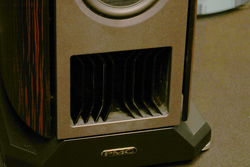 この4基のウーファーユニットは、PMCのお家芸とも言えるエンクロージャー/ダクト構造“アドバンスド・トランスミッションライン(AMT)”を採用したエンクロージャーにマウント。またダクト部分には、Laminairと呼ばれる独自の構造を採用。これは極めて効率的な排気が求められるF1やル・マンなどのレーシングカーのダクトからアイデアを得たもので、ポート部分にスリットを設けることで低域に正しい指向性を持たせることを可能にするエアフローを実現したという。