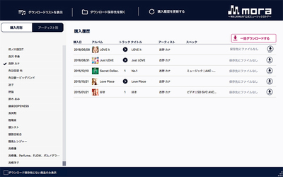 Mac向け「moraダウンローダー」がリニューアル。購入履歴の表示が可能に
