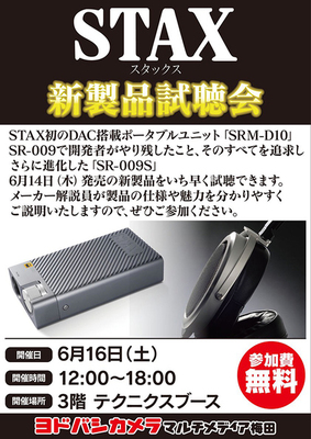 スタックス、静電型ヘッドホン「SR-009S」&DAC内蔵型ポタアン「SRM-D10」試聴会をヨドバシ梅田で開催