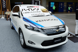 JVCケンウッドは、カーエンタテインメントのハイレゾをリードする「彩速ナビ」をデモ。トヨタのハリアーには彩速ナビのフラグシップとなる「MDV-Z905W」、スピーカーにハイレゾ対応のXSシリーズ「KFC-XS1703」、サブウーファーに「KSC-SW30」を搭載している(レビュー記事1、記事2)。