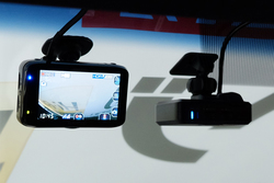 また担当者によれば、昨今はドライブレコーダーへの需要が高く、彩速ナビが同社製ドライブレコーダーとの接続として「スマート連携」が行えることが特徴という。デモカーでは「DRV-N530」(フロント用)、「DRV-R530」(リア用)のドライブレコーダーが実際に設置され、こちらもアピールされていた。