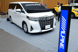 アルパインは、トヨタのアルファードに車種専用となる11型カーナビ「ビッグX」を搭載。スピーカーユニット+サブウーファーも含めたアルパインスタイルでデモを行った。デモカーの脇には、筐体も自社で制作したというカー用ユニットを使用したスピーカーも設置されていた。