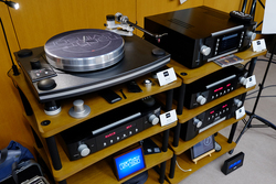 スピーカーをドライブするのはMark Levinson(マークレビンソン)のハイエンドオーディオシステム。アナログプレーヤー「No515」やデュアルモノラル・プリアンプ「No.523」など、ブランドの現行モデルが取り揃えられており、この貴重かつ豪華なサウンドを体験できるブース内では立ち見も含めて人が途絶えることがなかった。