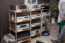 ラックスマンは、“今のラックスマンの代表する音”で音楽を聴いて楽しんでもらうことをテーマに、同社ハイエンドモデルを用いた『音楽ジャンル限定試聴会』を展開(関連ニュース)。試聴システムは、コントロールアンプ「C-900u」、パワーアンプ「M-900u」×2、アナログプレーヤー「PD-171A」、フォノイコライザー「EQ-500」、CD/SACDプレーヤー「D-08u」、FOCALのスピーカー「Scala Utopia EVO」を用意。ジャンルは16日がクラシック/生録音作品/ロック、17日がAOR/ジャズで、それぞれオーディオ評論家らを招いて行われる。