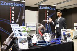 ゾノトーンは、最新の5月下旬に発売されたばかりの最新スピーカーケーブル「Grandio SP-1」をはじめ、同社の電源ケーブルやインターコネクトケーブル、スピーカーケーブルを出展していた。