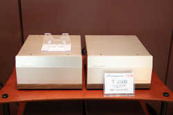 フェーズメーションは、同社の真空管アンプ、カートリッジ、フォノイコライザー、昇圧トランスなどアナログ関連製品を一斉デモ。その中でも最新のモデルとなる「T-2000」は、左右独立の2筐体構成としたMC昇圧トランスとなる。