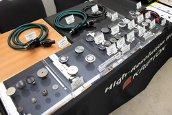 光城精工はForce barシリーズの電源タップ、オーディオ用クリーン電源を中心に出展。KaNadeは同社のインシュレーター各種を一斉展示、ヘッドホンアンプと組み合わせて実際にその効果を試すことができるブースを用意した。