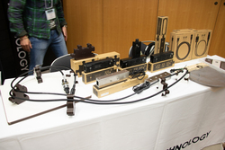 フルテックのブースで注目を集めたのは、話題のケーブルホルダー「NCF Booster」「NCF Booster-Signal」。NCF Boosterは電源ケーブルのプラグを上下から挟み込んで支え、接続性を向上させるというもの。NCF Booster-Signalはそのバリエーションモデルとして、RCA/XLRプラグやHDMI端子、USB端子にも用いることができる。会場では、両モデルに追加して利用できる調整ノブ「Shaft Bar Adjaster」も参考出展。このノブを追加することでさらに細かい高さの調整が可能になる。