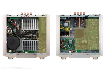 スイッチングアンプ採用によって生まれた筐体内スペースの余裕を活用して、同クラスのプリメインアンプとしては破格の規模のプリアンプ回路を搭載したことが最大の特徴。このスペースファクターを活かして、パワー部とプリ部で完全独立した電源の搭載も実現した。