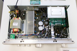 D/A変換以降のアナログオーディオ回路には、同社オリジナルという容量3,300μのブロックコンデンサーを採用。また、エントリークラスながらDCD-2500NEやDCD-1600NEなど上位モデルでも使用されている音質パーツを多数採用。いずれの音質パーツもフラグシップ「DCD-SX1」の技術を汲むものだという。