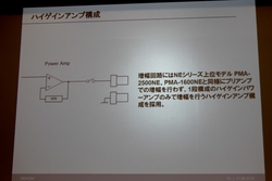 増幅回路にはPMA-2500NE、PMA-1600NEと同様にプリアンプでの増幅を行わず、1段構成のハイゲインパワーアンプのみで増幅を行うハイゲインアンプ構成を採用。信号が通過する回路と素子の数を減らし、経路も最短化して音の純度を高めている。