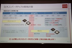 なお現時点で、デモで用いられた本DAC搭載の試作ボードを複数のメーカーへ提供ずみ。2019年の製品版サンプル提供に向けて、フィードバックされた意見も反映しながらさらなる追い込みを行っているという。現段階の完成度については「もう一周の追い込みを行う」と説明していた。また、すでに複数のメーカーが採用を検討しており、2019年の秋冬には本DACチップを搭載したオーディオ機器が世に出るかもしれないとのことだった。