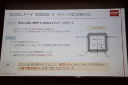 発表会では、このDACチップの音質設計を担当する佐藤陽亮氏がその詳細を紹介した。