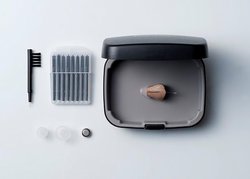 サイズは20.7W×10.8H×13.6Dmm(突起部除く)で、質量は約1g(電池を除く)。出力音圧レベルは114dBSPLで、最大音響利得は38dB。付属品には、耳あかの詰まりを防ぐ交換式の耳あかガード、耳にフィットするサイズを選べる3種類(S/M/L)のイヤーピース、ゴミを掻きだせるお掃除ブラシ、お試し用電池のほか、収納ケース、サポートシート、仕様書、保証書が付属する。